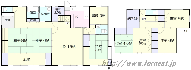 (1階)和6、(1階)和7.5、(1階)和8、(1階)書斎5、(1階)LD15、(1階)K、(1階)納戸2.5、(2階)和4.5、(2階)洋6、(2階)洋6、(2階)洋6.5、(2階)納戸3 |